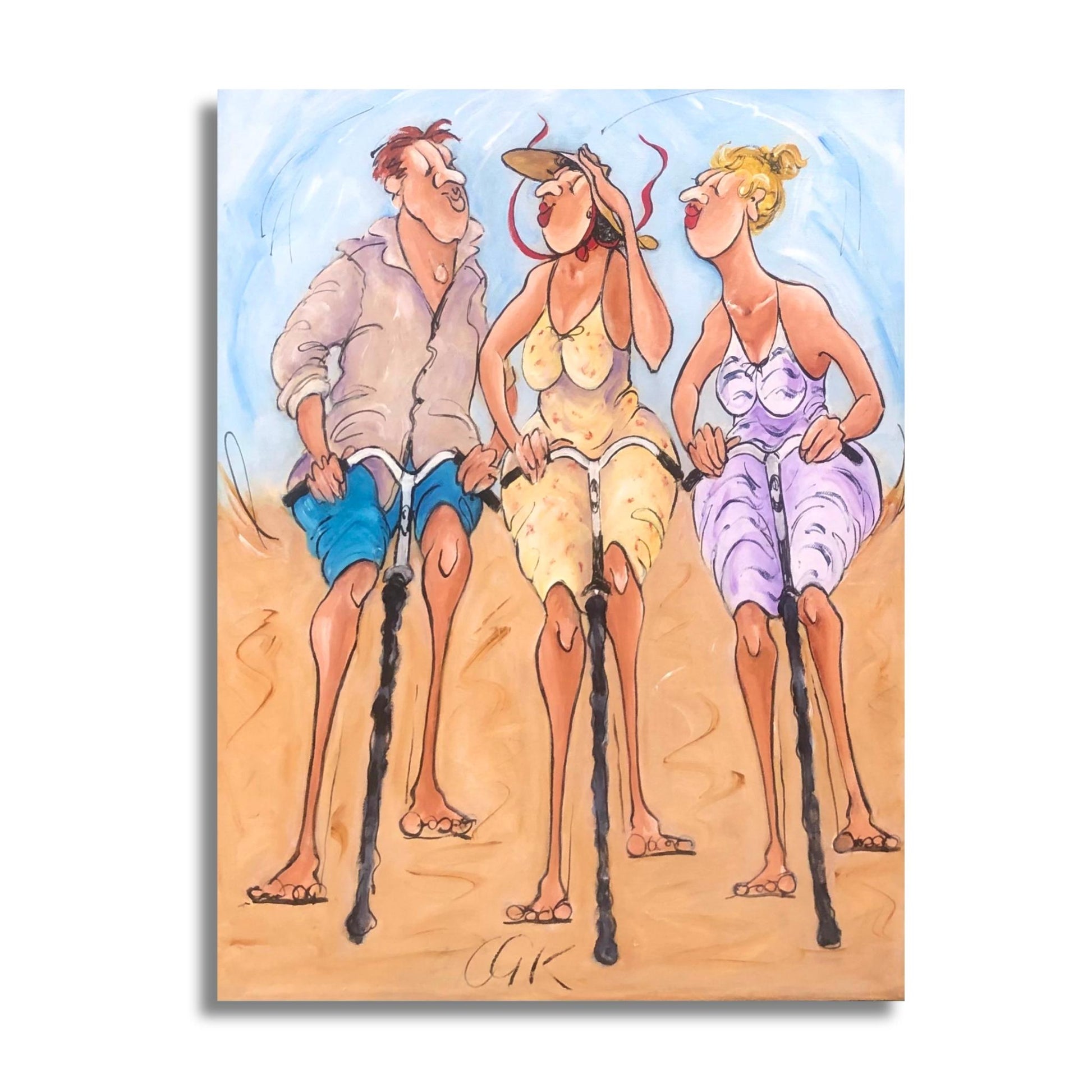Chloe King captures that carefree, wind-in-your-hair feeling of cycling with mates - the kind of moment that makes you smile just thinking about it. Her playful style brings out the joy and character in everyday scenes, turning a simple bike ride into something worth celebrating on your wall.