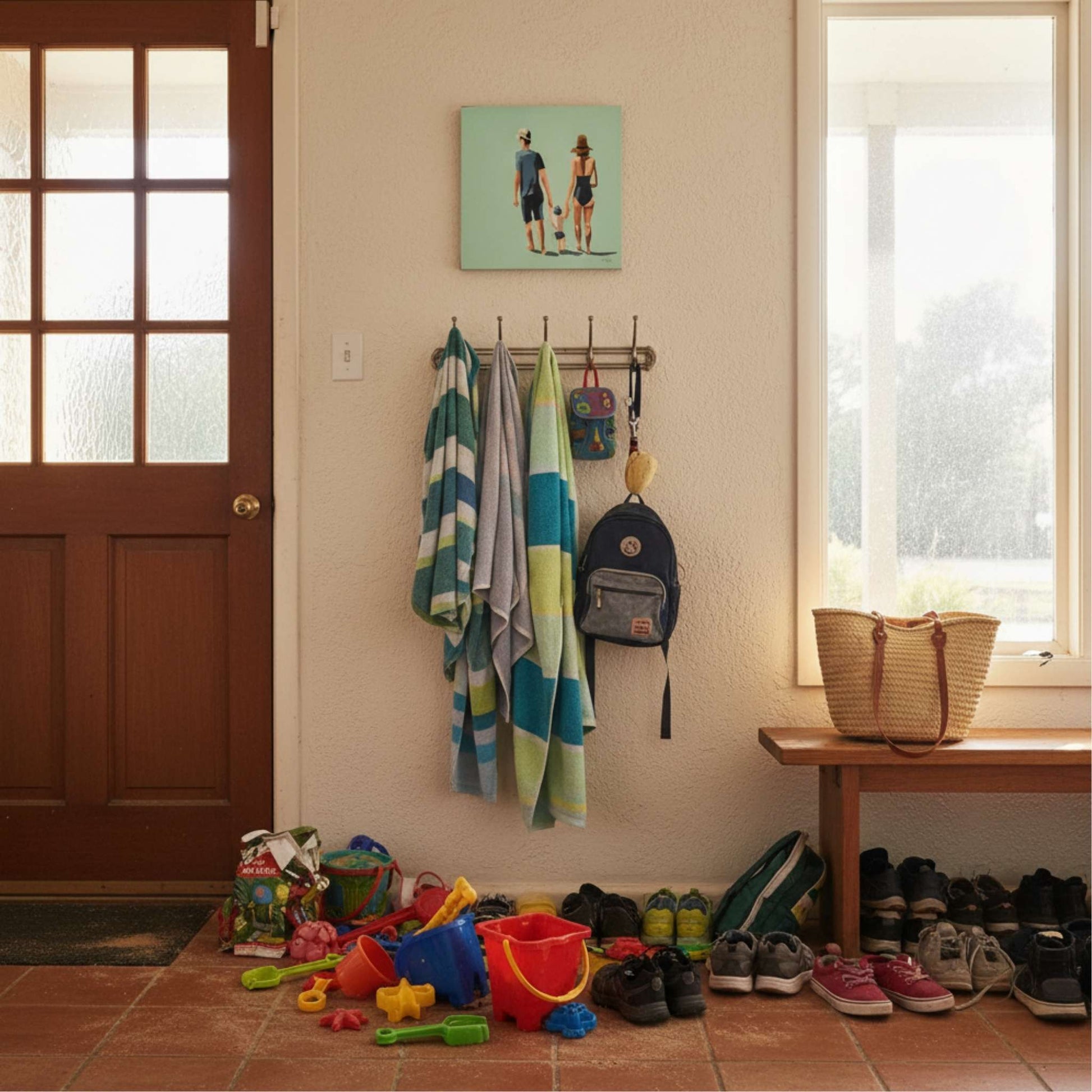 This is what matters, distilled into a single moment. Not the big gestures or the perfect plans—just the three of you, walking together, holding hands, being present. It's the kind of art that doesn't need explanation because you already know exactly how it feels.